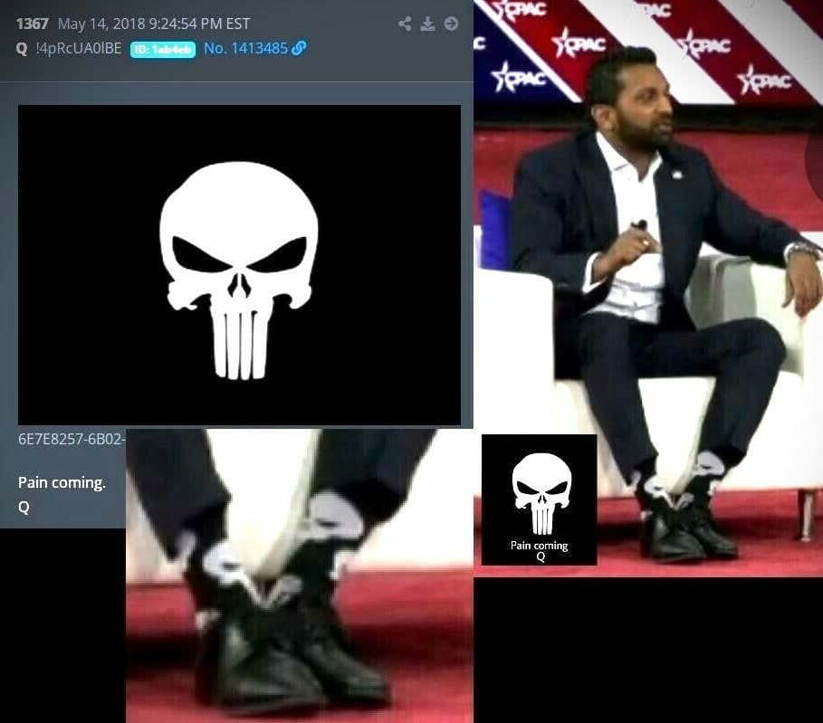 For those familiar with “The Punisher” meme, notice Kash Patel’s socks. Do you think he might be someone very familiar with the Q operation? Bobby Kennedy was approved today. We are hoping Kash gets approved tomorrow. He is needed to run the FBI and in conjunction with “Jamie” Bondi (007) over at DOJ, the clean-up can get underway in Trump time.