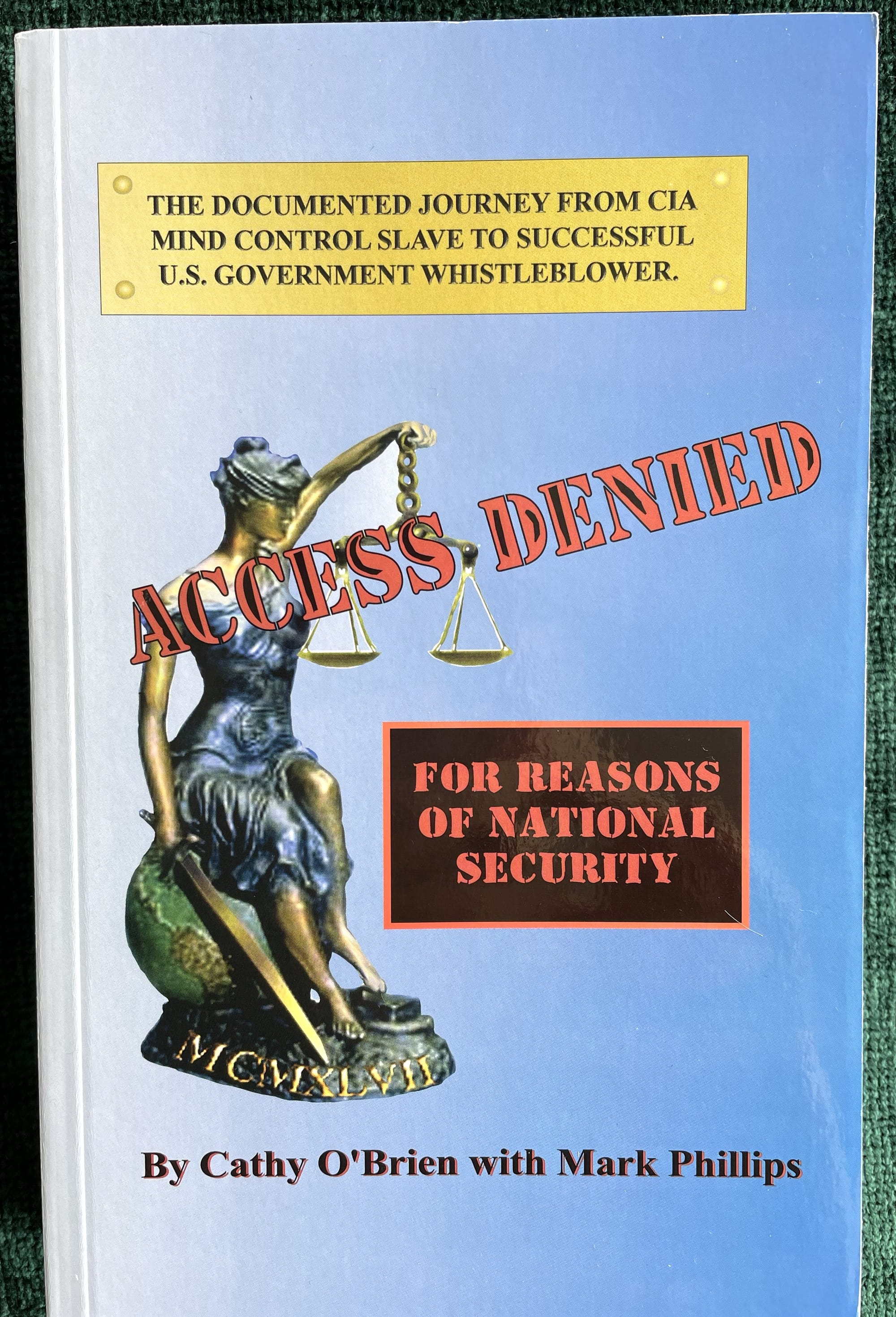 Even knowing I was going to see Cathy in a week or two, I did not find the time to pull the copy off my library shelf and re-read it before the Conference, but I asked Cathy if I were correct in recalling that she had revealed in the book that among the many famous persons who had horribly abused her (sexually and other tortures) was Lee Greenwood.