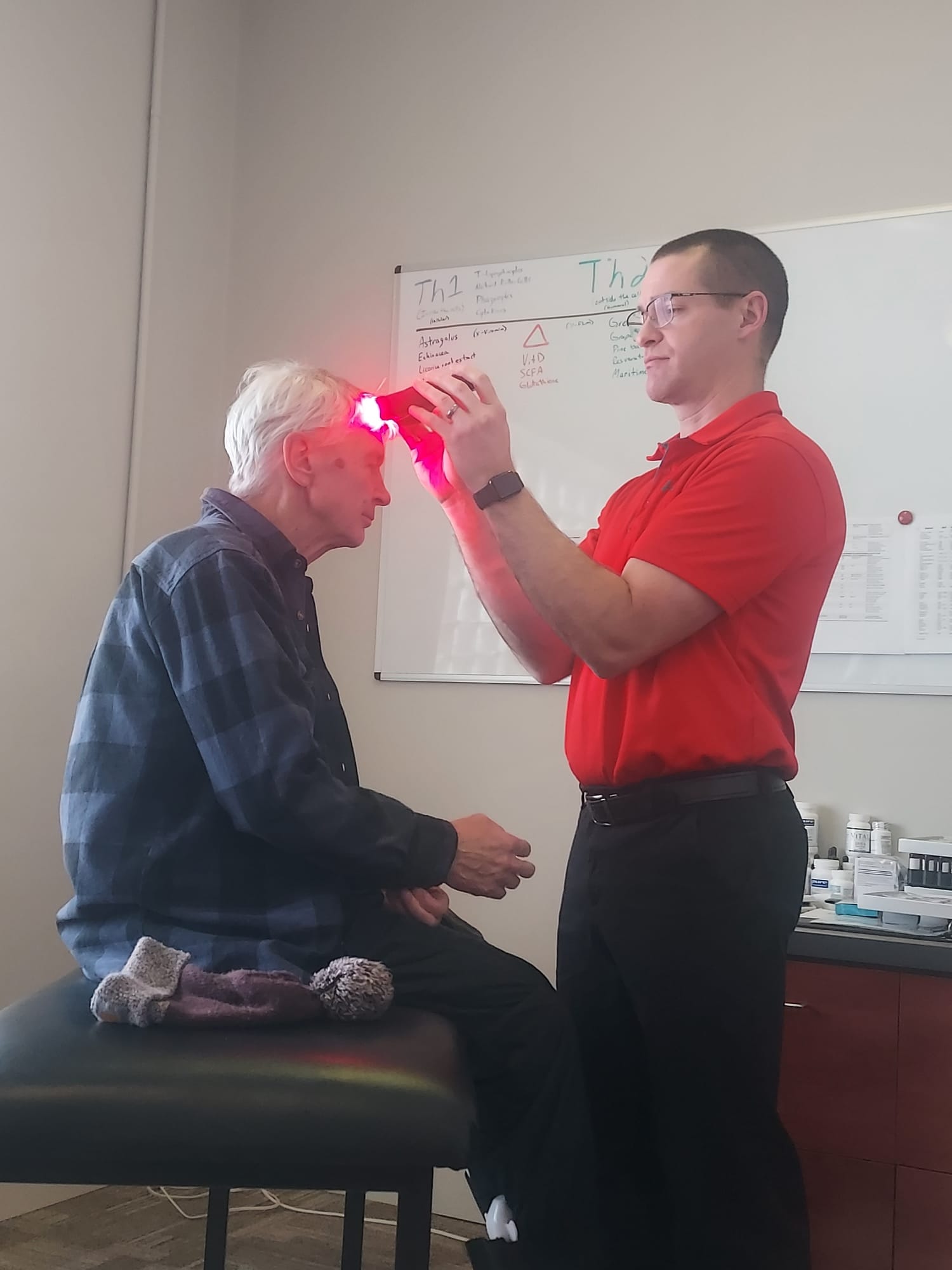 They have seen various specialists—both in the medical community and in the alternative community, but his condition continues to deteriorate. Here below is photo from just a week ago of Ron receiving laser treatment. Pauline is continuing to source outside help.