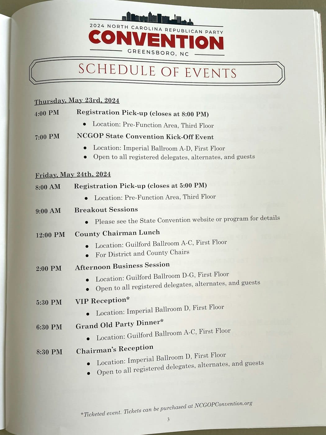 This being the week of the Republican National Convention—about which we can opine much—we are choosing instead to perhaps help readers who are not familiar with a political convention to have a greater understanding of what goes on at Conventions by sharing what I learned as a Delegate to our NCGOP Convention. This is a follow-up to our first blog on the event which we posted last Friday, July 12th, linked here.