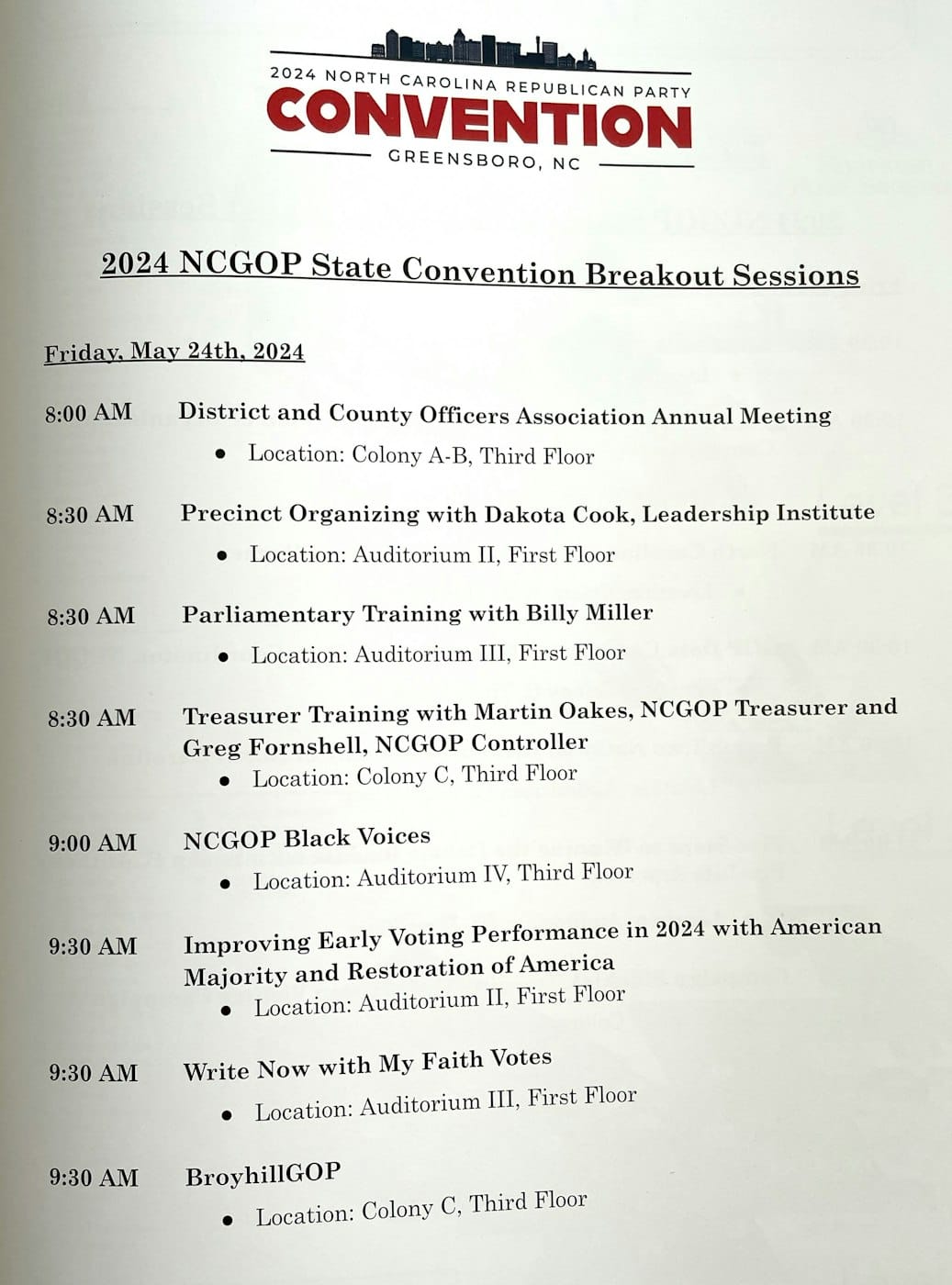 On Friday morning, May 23, 2024, I arose early and eager to participate in the Convention. Here is the Schedule of Events for the day: