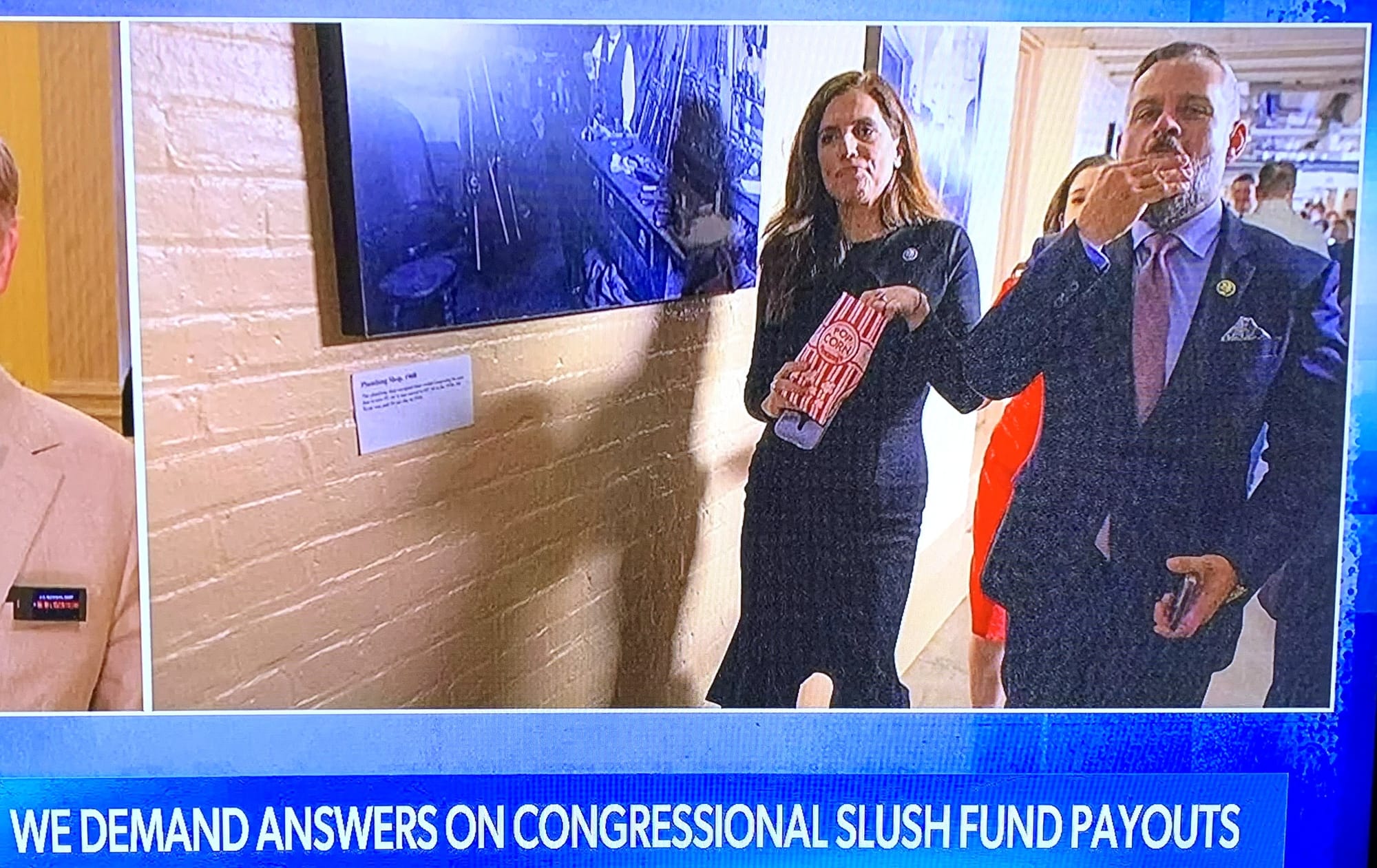 Well, here is a screen grab that afternoon of Rep. Mace walking down the halls of Congress, well aware the cameras are rolling, eating popcorn!