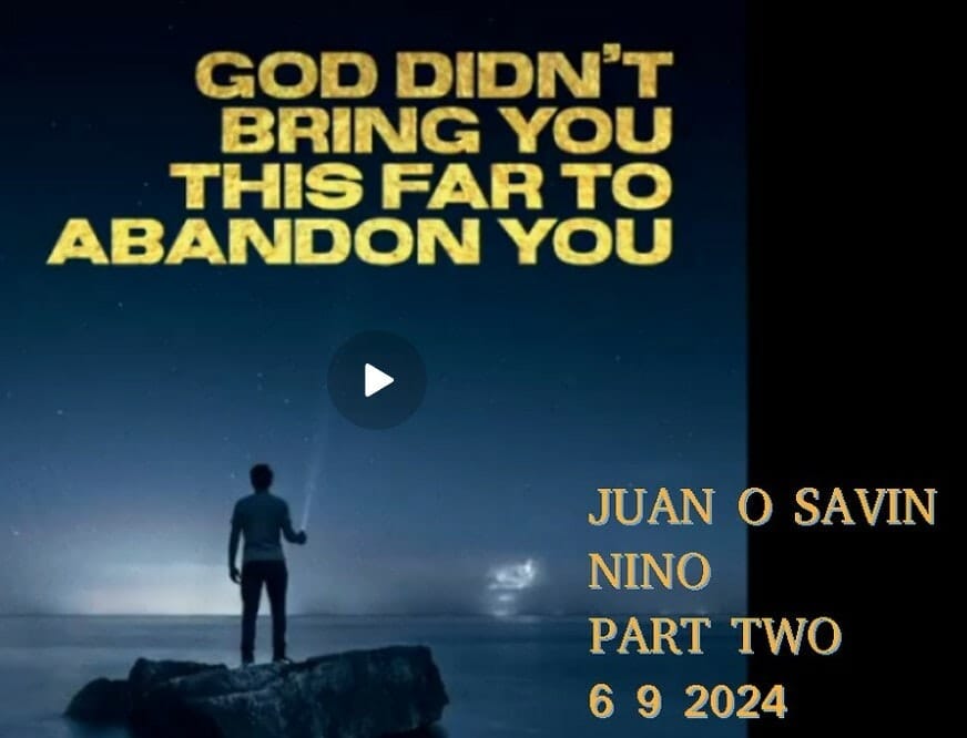 QUOTE: Prepare yourself. This is PART TWO where Juan Lays it on the Line. Yes you will survive YOU HAVE COME THIS FAR. GOD DIDN'T BRING YOU THIS FAR TO ABANDON YOU. A Prayer at the end and LISTEN to the Words. You can do this! We need you. You are important. Do not despair. For in FAITH we become better. For in HARDSHIP we endure. For in PAIN we find GLORY. GOD IS WITH US. END QUOTE