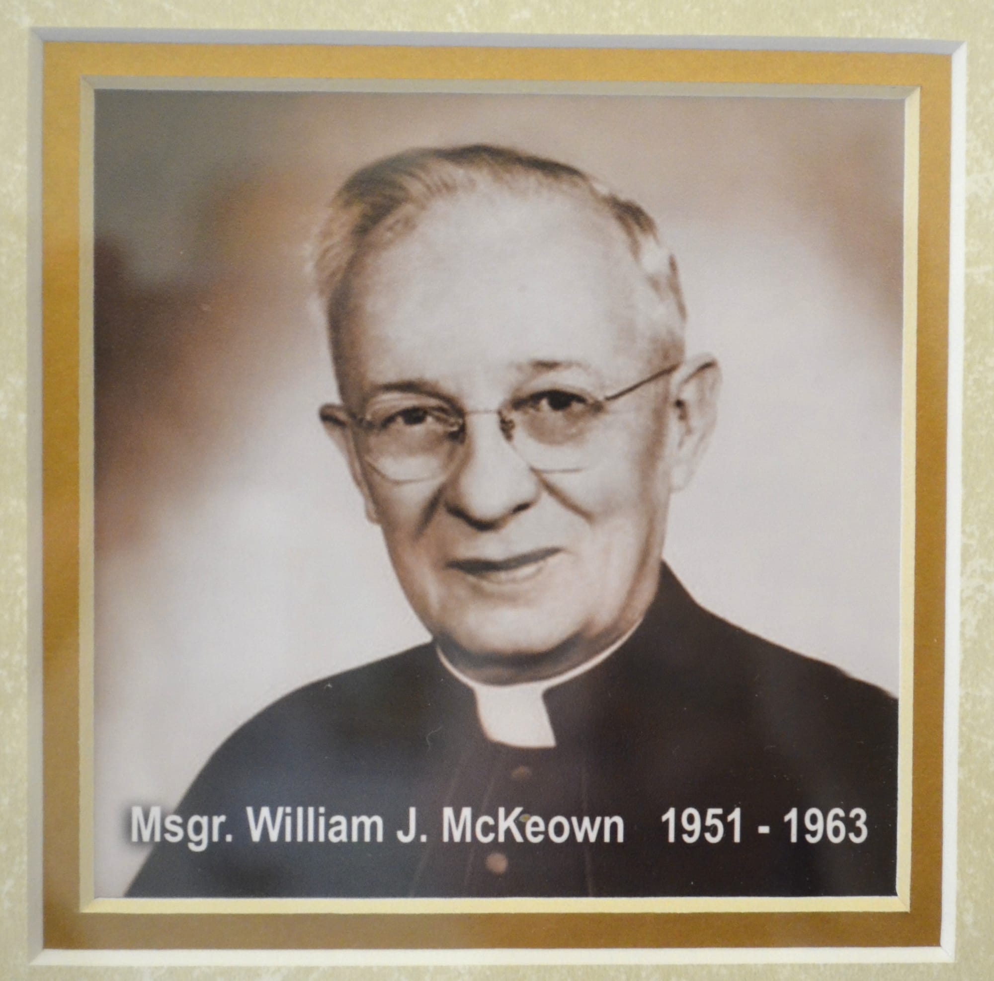 The featured photo of the “Blessed Virgin Mary” is the only artwork on the ceiling inside the church. No pictures of Jesus, just “Mary” in “heaven.” And here below is a picture from the gallery in the church foyer of one of the priests for whom I remember serving mass.