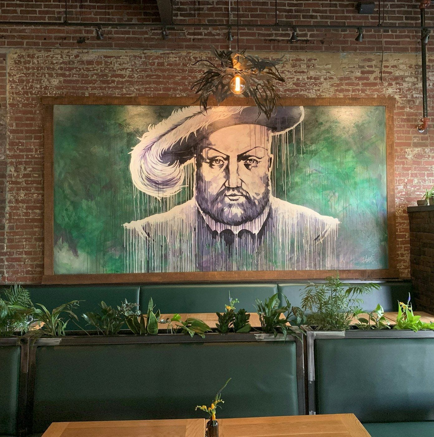 I bring it up because in the tasting room/restaurant, there is a huge wall mural with a depiction of King Henry VIII.