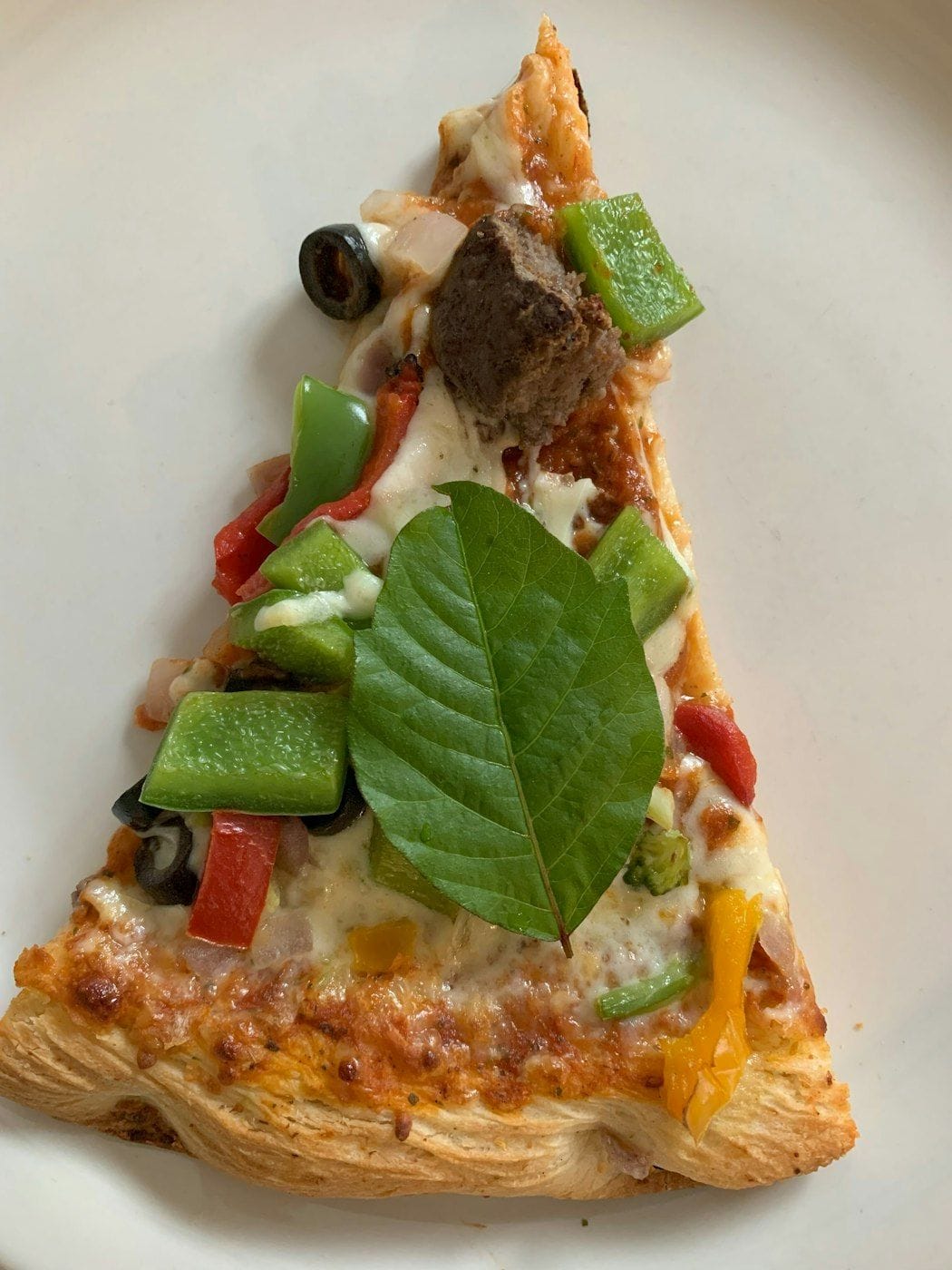 Not that I felt it was necessary to ingest any more this season, but I did reach down again into the midst of that patch of the wicked weed and plucked another stem of three. I ate it a week ago. Here below is a picture of my “poison ivy pizza.” I think I’ll contact the brew pubs around here and see if the idea will catch on. 🤣