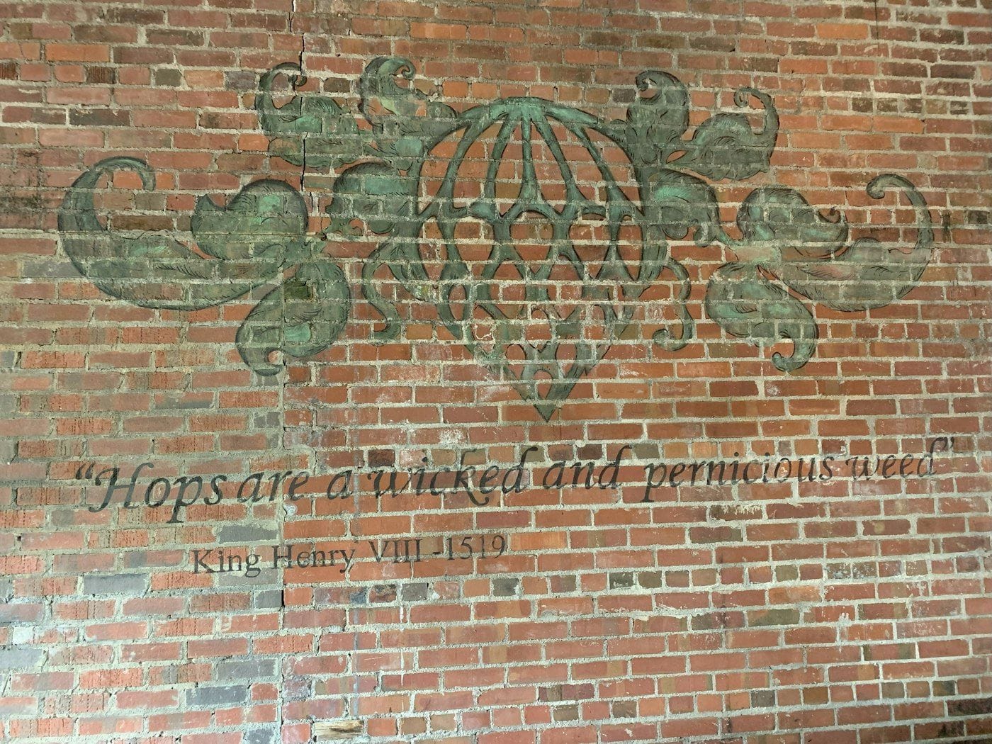 On the opposite wall is the purported quotation of him stating that “Hops are a wicked and pernicious weed.”